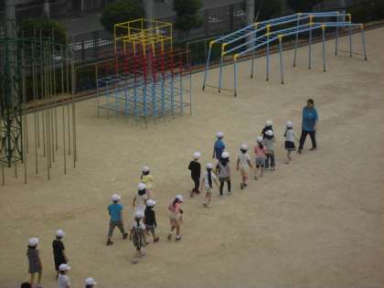 1年生はクラスに分かれて、運動場での過ごし方や遊具の使い方の学習をしました。たくさんの遊具に子どもたちは大喜び♪子どもたちは先生の話をしっかりと聞いて、みんな運動場マスターになりました。