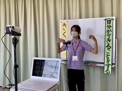 今日の放送朝会は、マイクロソフトチームズを使って放送朝会を行いました。