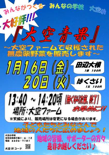 1月15日(木)学校に行くDAY&見守るDAY♪ 1月16・20日は大空青果♪
