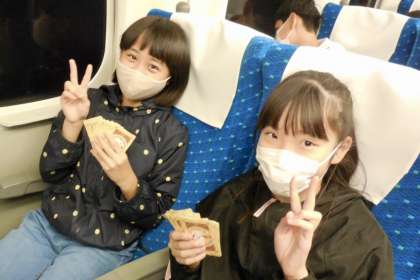 新幹線で広島へ向かいます♪トランプやウノをして過ごします。