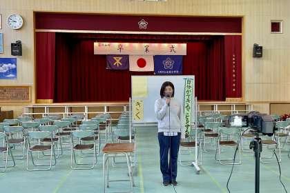 次に校長先生から、卒業していくリーダーたちが伝えていった