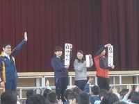 卒業式に卒業生が自分の言葉で思いや考えを伝えた内容を、卒業式に参加していた今年のリーダーが全体の場で伝えます。