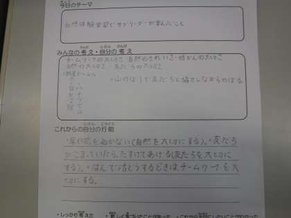 「自然体験学習に行って学んだこと」が今週のテーマです。