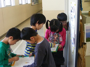 今日は、低学年のリーダーである2年生がリードして、1年生と学校たんけんをしました。