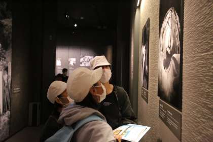 平和記念資料館で学ぶ様子です。