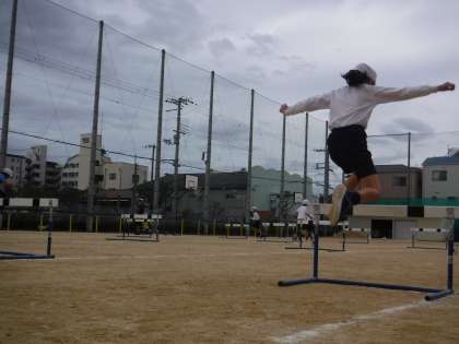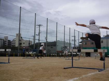 どうしたら、ハードルをリズムよく跳び超えながら走れるか、歩幅や踏み切る位置など、試行錯誤しながら練習していました。