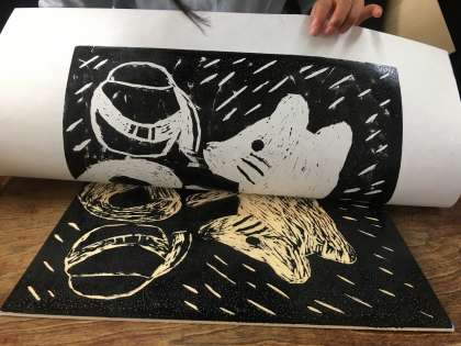 「ごんぎつね」の木版画を刷りました。仕上がった作品は、教室に掲示しますので、ミンガラーバでご覧ください!