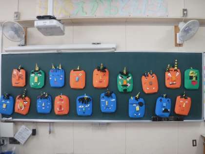 節分の日に合わせて図画工作で「おにのおめん」を作りました!
