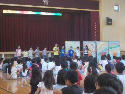 教職員の大空劇団のように台本なしのアドリブで表現します。子どもも大人も、今週の月曜日、全校道徳で「あいさつ」のことをテーマにして学習しています。あいさつをすれば、お互いに気持ちが良くなり、うれしくなり、元気になり、みんなでふれあうことができます。