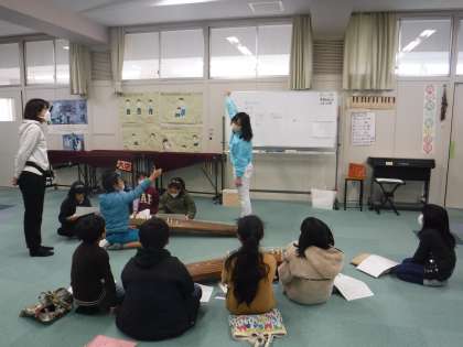校長先生から「さくら」の弾き方を教えてもらい、慎重にゆっくりと弾きながら、弦の音色を楽しんでいました。