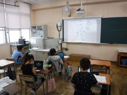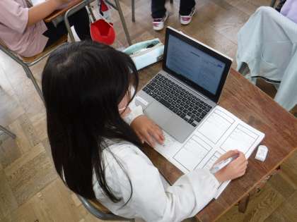 市町村の名前、人口、面積、特産物など、タブレットを使って調べ学習をしました。