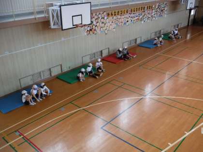 壁際にマットを敷き練習しだすと、みんな熱心に取り組んでいました。