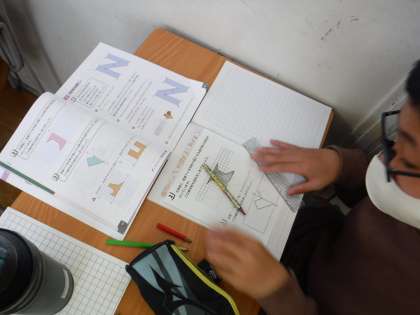 その後、マス目を1メモリずつ数え、線対称な図形を書く練習をしました。