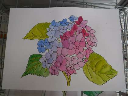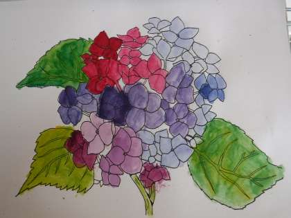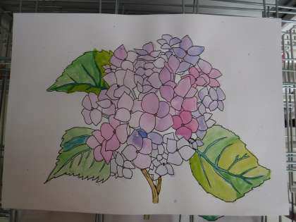 画用紙の中に、素敵なあじさいの花が咲きました。