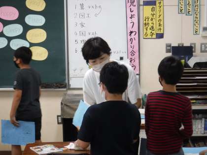 「What 〜 do you like ?」 「I like 〜・」の学習をしました。友だちと話す練習をして、教室が熱気に包まれていました。
