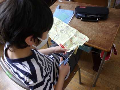 4時間目、家庭科の学習で、かがり縫いや、