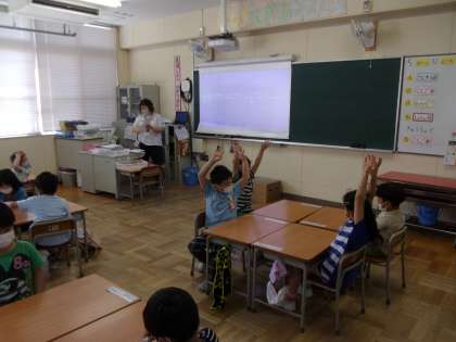 5時間目の国語の学習「きいてつたえよう。」では、先生からのメッセージを班の子たちに伝えてその通り行動するという学習です。