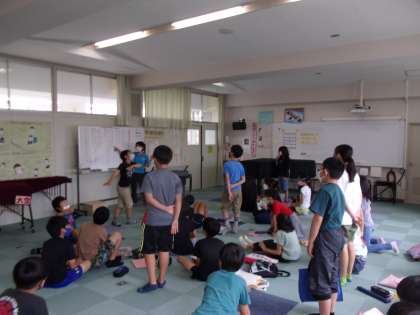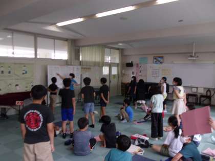大空小学校の校歌を6パートに分け、クラスのみんなも6班に分けました。