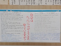 先週のテーマ「やりなおしは、何故するのだろうか?」の中で、「やりなおし」は、自分の力を高めるチャンスであることを学びました。しかし、他の人から言われて「やりなおし」に行っている人がいるのに対して、本当にそれでいいのかという市場校長先生からの問いがありました。4つの力を高めている大空小のみんなは、もちろん「自分から」という考えをもって行動します!