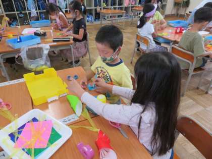 七夕集会に向けて、1,2年生で飾りを作りました。2年生が1年生に作り方を伝えて一緒に楽しく作りました。七夕集会が楽しみです。