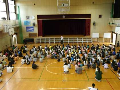 大空小学校の講堂に、子どもたちの元気な挨拶の声が響きわたりました!