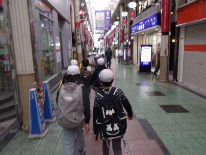 JR天満駅から日本一長いといわれている「天神橋筋商店街」の中を歩いて、「くらしの今昔館」の見学と体験学習に行きました。