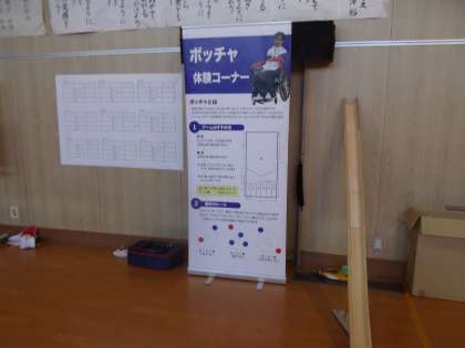 大阪市障がい者スポーツセンターから選手2人とセンターの方1人に来て頂きボッチャ体験をしました。