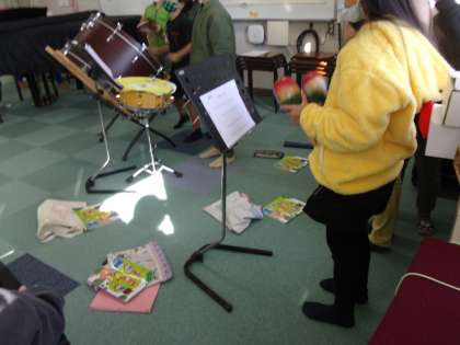 それぞれやりたい楽器を選び、自主練をしました。