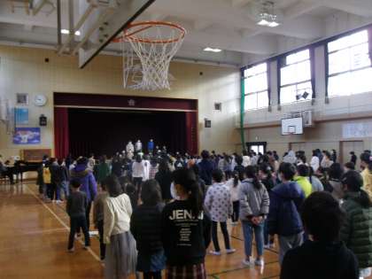 「優しさの誕生日」を歌い、12月生まれの子どもたちが自分の思いを表現しました。