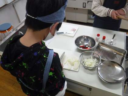 たくさんの教職員・サポーターの皆様の見守りがあって、ケガがなく調理実習を終えることができました。
