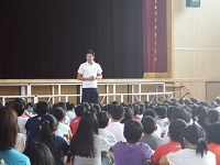 そして、1学期に行った「予告なしの命を守る学習」から学んだことをこの学習に活かせたかどうか、子どもたちに問いかけます。