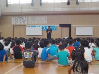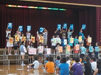 力強く発表されたテーマは、講堂の空気を響かせます。低学年チーム、中学年チーム、高学年チーム、それぞれのチームが一つになって、そして大空の子どもたち全員がチームとなって運動会に向けて学習します。さらに、大人も一緒になって自分から行動します!