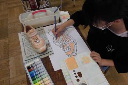 「よく見てかこう」をテーマに、自分が普段使っている靴を描きました。