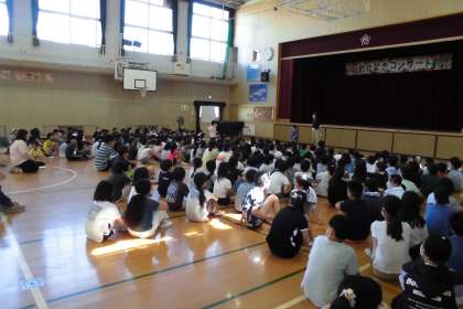 その後、今週木曜日に「自然体験学習」に出かける5年生から、みんなに向けて、「行ってきます!」の挨拶がありました。