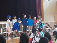大空ちびっこ劇団を見る子どもたちは、真剣に見ながらも笑顔があります。