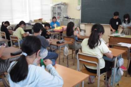 6年生が平和学習で各学級を回って、平和に関する絵本の読み聞かせと、折鶴の折り方を教えてくれました。完成した千羽鶴は修学旅行に持っていきます。