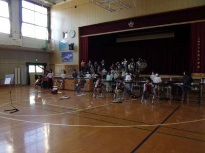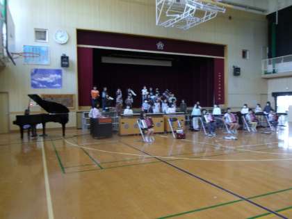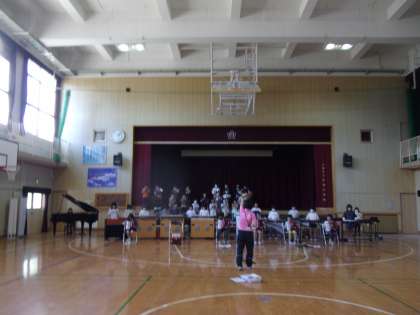 みんなで力を合わせて素早く運び、初めて講堂で合奏をしました。