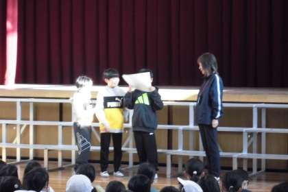 校長先生から、土曜日に「南大阪子ども民族音楽会」に参加した3人の友だちへ表彰状が渡されました。日本と韓国の「じゃんけん」について、似ているようで少し違うというお話もありました。