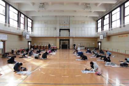 6年生は「伝統を守る」、5年生は「強い決意」と書きました。