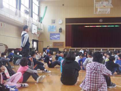 先週の全校朝会で、大空のリーダー(6年生)が修学旅行で学習してきたことを自分の言葉で伝えました。それを聞いて、自分の考えを持った1〜5年生。