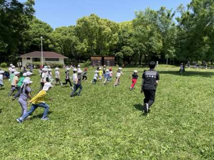 校長先生とも一緒に「だるまさんがころんだ」をしている様子です