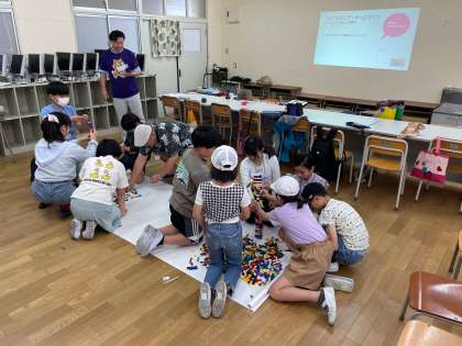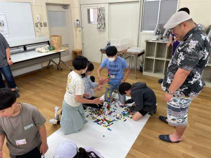 5年と6年でチームに分かれて、LEGOブロックの高積みにチャレンジしています。
