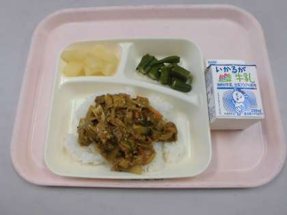 ・和風カレー丼 ・牛乳 ・オクラのかつお梅風味 ・和なし(カット缶)