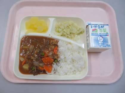 ・ハヤシライス ・牛乳 ・キャベツのゆずドレッシング ・りんご(カット缶)