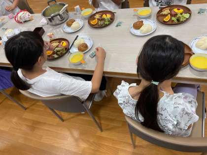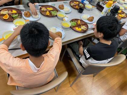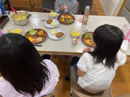 朝食の時間です。山登りに向けてしっかり食べましょう。
