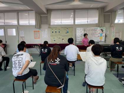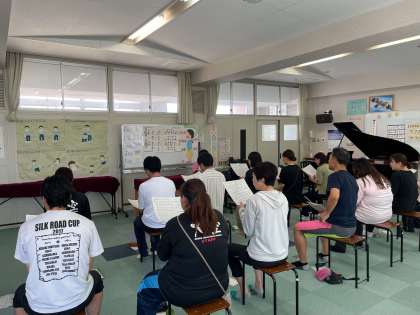 つばさをくださいを教材に合唱の校内研修を行なっています。子音(k.s.h)に気をつけて歌唱の練習をしています。