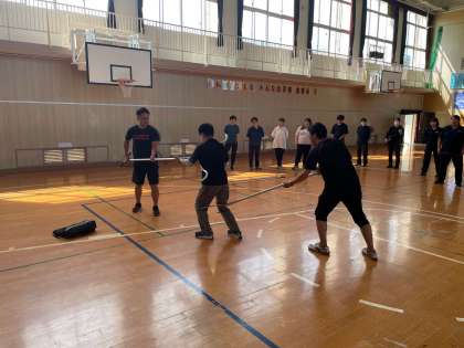 警察のかたに来校してもらい、教職員対象に不審者対応訓練をしてもらいました。