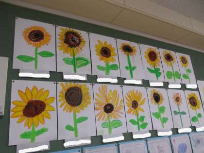 花びら一枚一枚ていねいに色付けし、真ん中の色もよく見ながら色を変えていました。