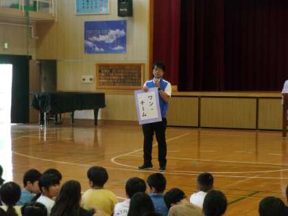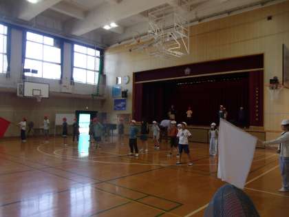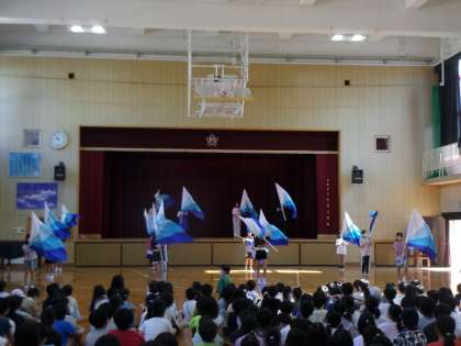 続いて、運動会の応援団とカラーガードからの応援紹介がありました。