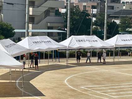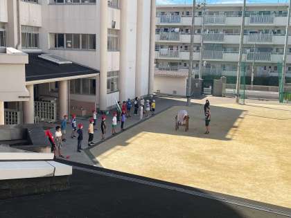 熱中症に気をつけながら、昼休みに応援団が練習をしています。元気な声が運動会に鳴り響いています。